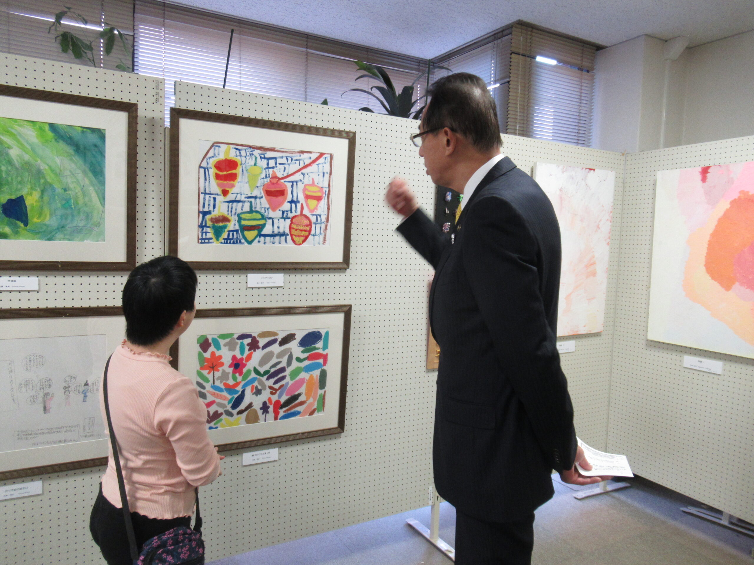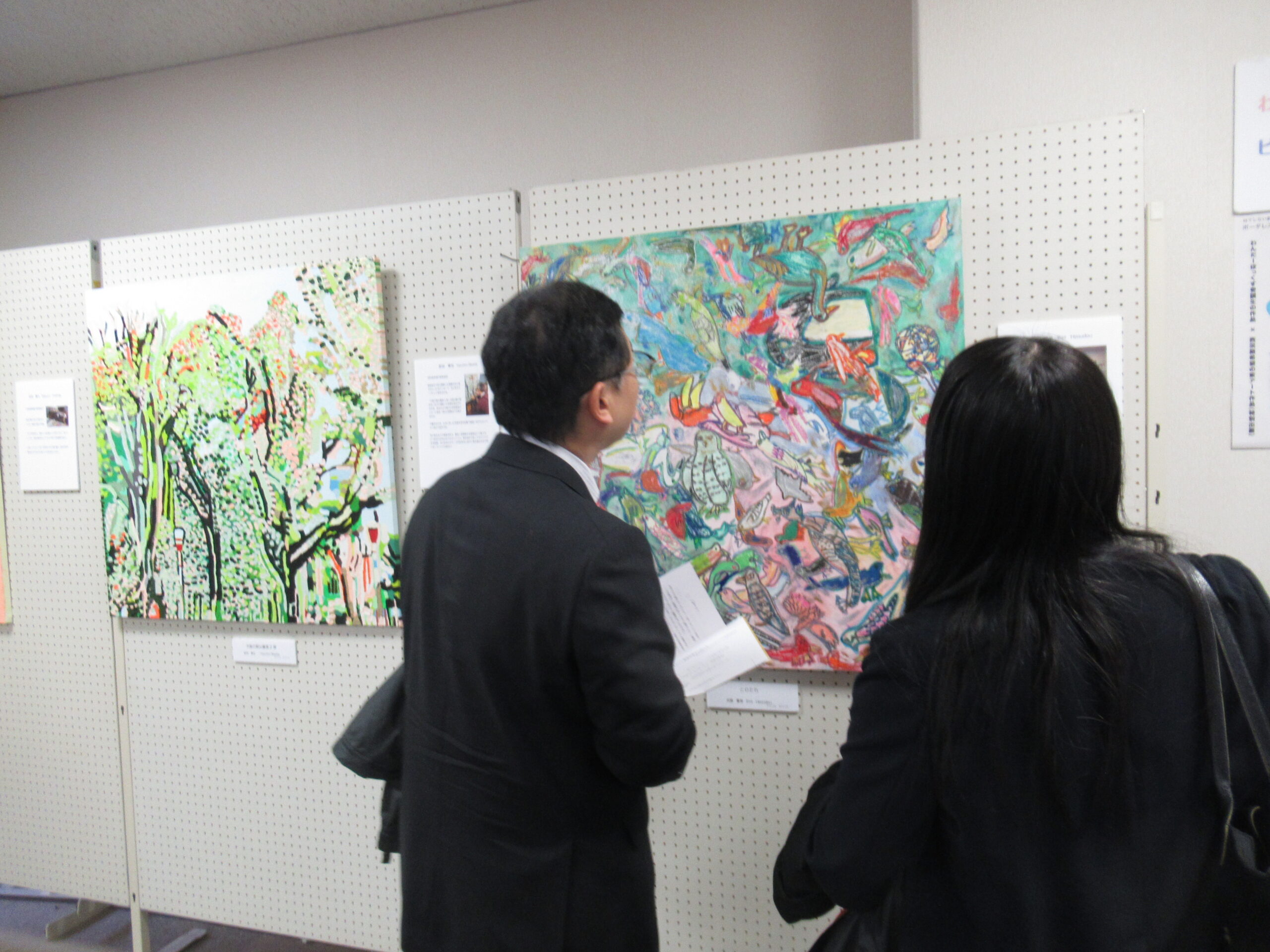 ボーダレスアート展にはご来賓として高槻市から濱田市長、八十副市長、西田教育長、松本生活文化環境部長はじめ関係部署のみなさん、Takatsuki Art Challengeを主催する(公財)市文化スポーツ振興事業団中原専務理事はじめ関係者、尾辻かな子衆議院議員・辻元清美衆議院議員代理、野々上愛・吉田忠則府議、高槻市議会から平田裕也市議会議長、吉田章浩・五十嵐秀城・森本信之・遠矢家永子市議等各級議員のみなさん。