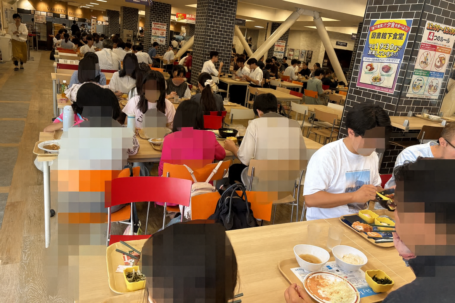 練習した後、11時半前に、学食へ移動。学食でご飯を買う体験も。大学生はこんなごはんがを食べているんだ。自分で注文して、お金を払い、食べる。これも大切な体験だと思います。