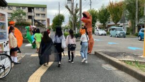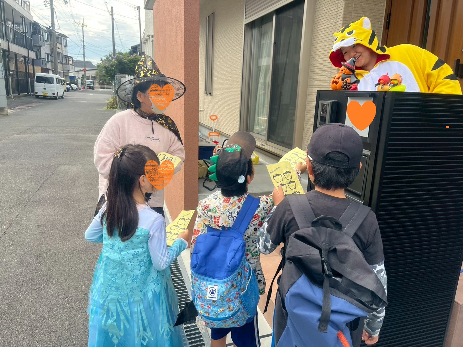 それぞれのお宅の玄関先のハロウィンのデコレーションや、みなさん、仮装までして出てきてくれており、ほんわりと胸の奥が温かくなるスタッフでした。