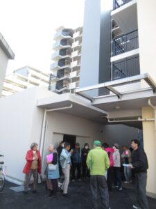 その後、BC棟各棟ごみ集積場現地に移動。市住宅課にも立ち会ってもらい、12月入居移転と同時に発生するごみ集積場の鍵の開け閉め・内部の清掃等ごみ清掃当番の手順も確認しました。