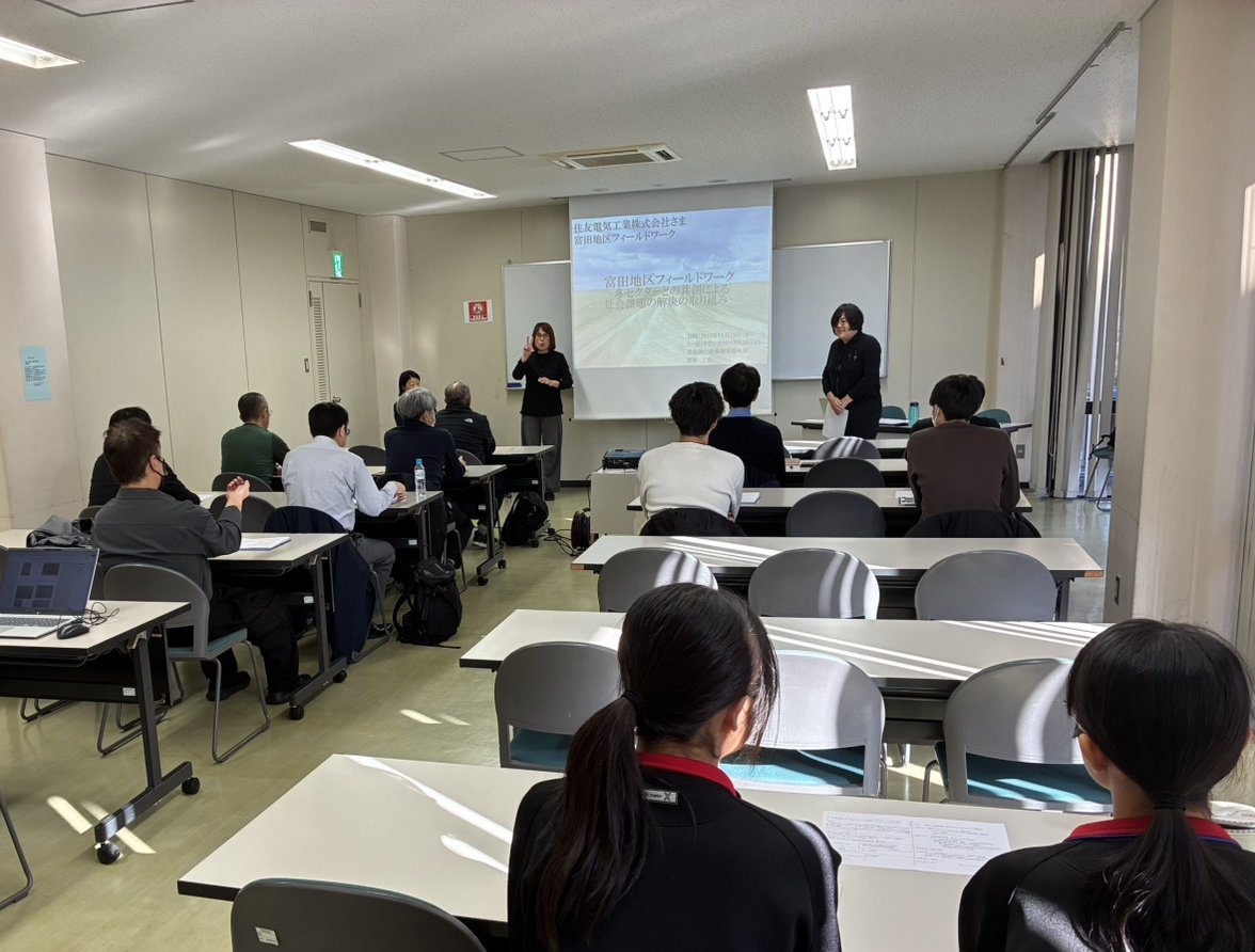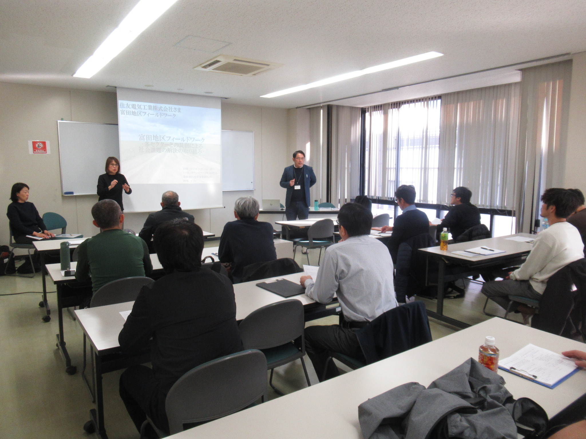前半は岡本工介業務執行理事兼事務局長から「多セクター共創による社会課題の解決」をテーマにガイダンス。後半は実際に富田富寿栄住宅建替えの現地や地域内施設等富田地区を歩いてフィールドワーク。 最後の質疑では、参加のみなさんからも熱心な質疑も出され問題意識の高さを感じさせれる研修会となりました。