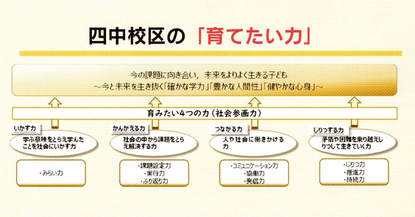 「今と未来を生き抜く確かな学力」と「社会参画力」を兼ね備えた教育・学力保障の取り組みはこの校区の重要な柱となっています。