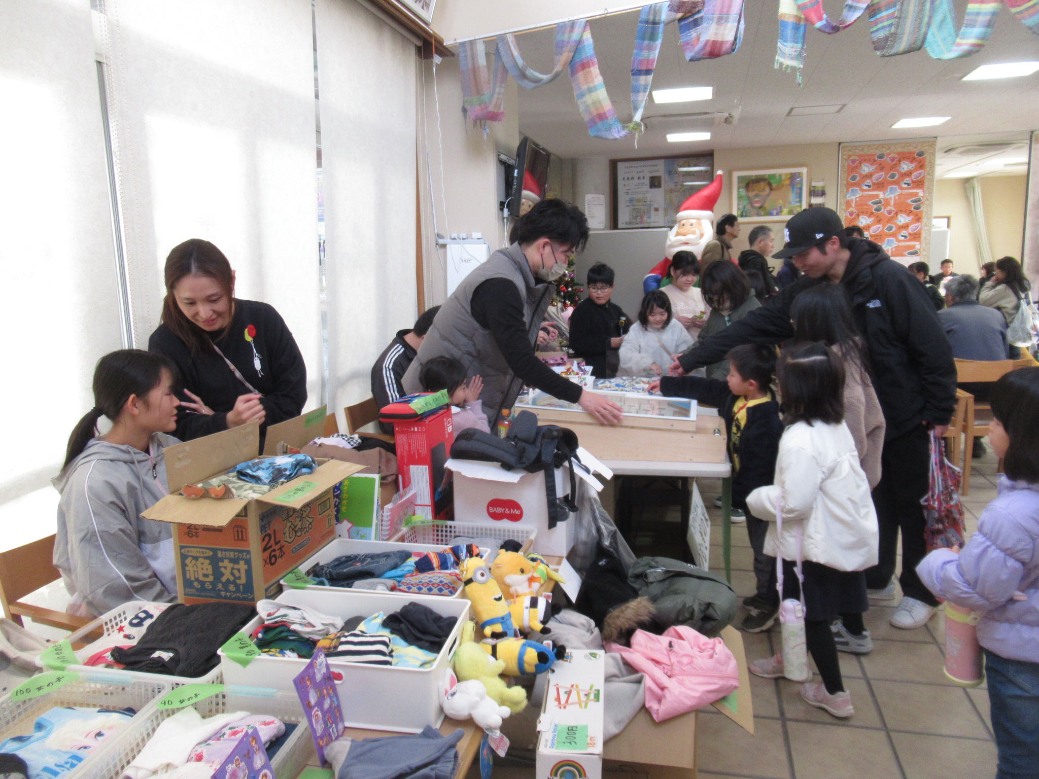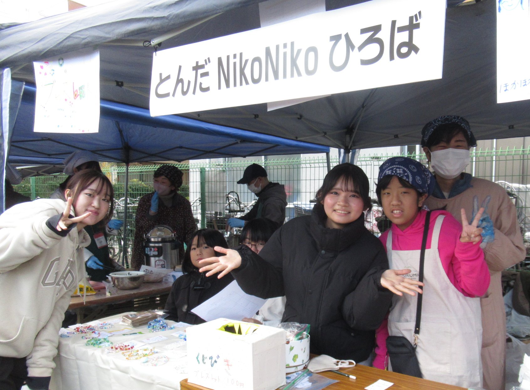 地下小ホールでは各実行委員団体による展示、青少年交流施設ではキッズいわきのおもちゃライブラリー、富田富寿栄老人会によるグランドゴルフなど体験コーナー。サニースポットおよび東広場ではバザーや飲食コーナー。とんだNikoNiko子どもの広場も肉まん、ブレスレット等を販売。
