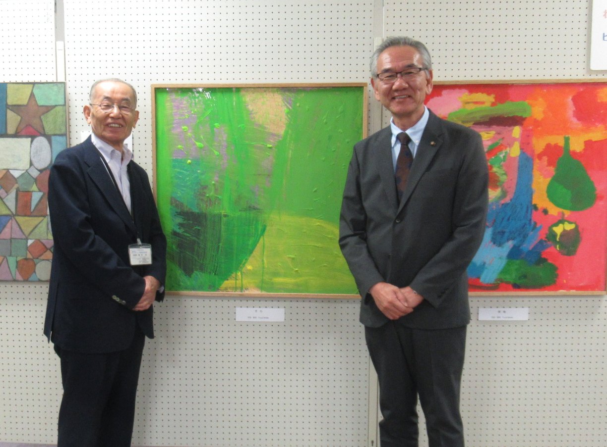 二日目は高槻市障がい福祉課、コミュニティ推進室、子ども青少年課等市関係課のみなさまはじめ昨日都合で来られなかった方も多くご来場。特別出展いただいている東淀川区西淡路希望の家」から作家の石田さん、神田さん、職員のみなさんもわざわざ会場へご来場いただきました。